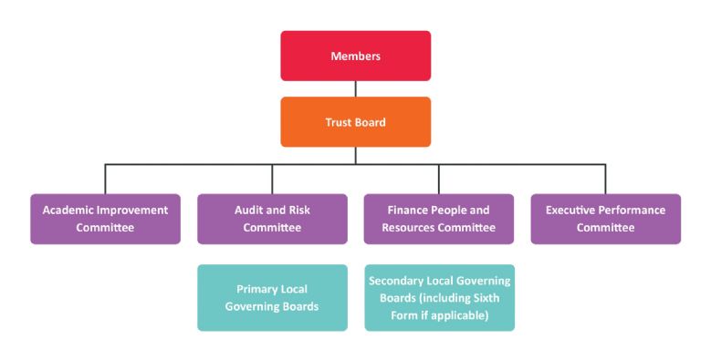 The Trustees (collectively, the Board) appoint Local Governing Bodies (LGBs) for each school. The constitution, membership and proceedings of the LGBs are established through discussion with the current Chair of an existing school’s LGB prior to conversion. The functions and proceedings of the LGBs are subject to regulations made or approved by the Trustees, from time to time.